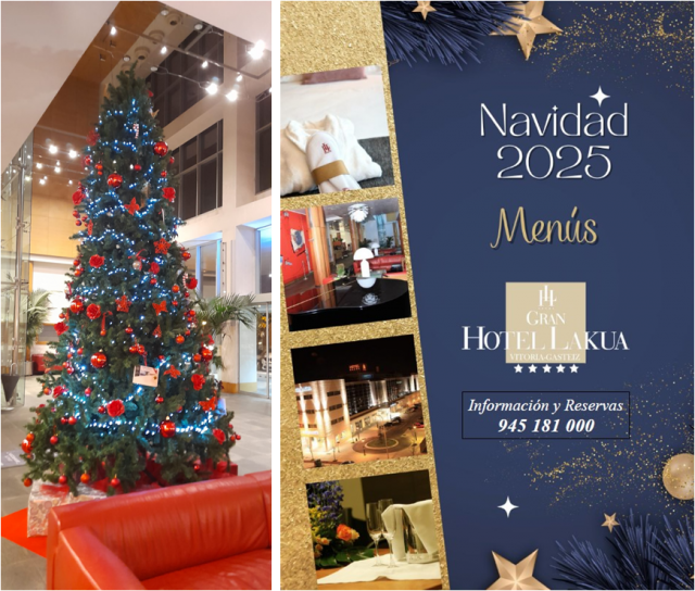 Termina este 2025 con una escapada diferente, unos días para vivir una experiencia impresionante en una ciudad que te acogerá con los brazos abiertos. Una oportunidad única para conocer un espacio singular y relajarte en su spa panorámico. Elige una fecha; Navidad, Nochebuena, Nochevieja o Año Nuevo, y déjate cuidar por el único cinco estrellas de la ciudad, el Gran Hotel Lakua de Vitoria, con unos menús preparados para cada ocasión, con precios desde 75 hasta 130 euros.