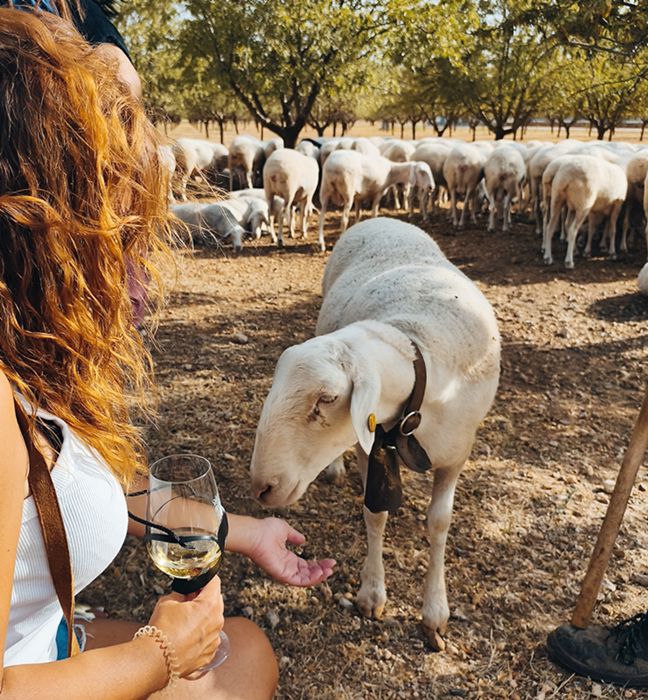 Durante la visita, comenzamos catando su blanco de Sauvignon Blanc, mientras contemplábamos los viñedos. Más tarde, un minibús nos llevó hasta el pastor Florencio y sus ovejas manchegas. Recorrimos el molino, la almazara y la quesería. Descubrimos cómo elaboran sus quesos manchegos y su aceite de oliva virgen extra, todo dentro de la misma finca. La jornada terminó con un picoteo de vino y queso. Al día siguiente, un taller creativo con @manos_de_lanas nos permitió elaborar jabones y lámparas con la lana de las ovejas de la finca.