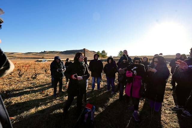Una vez conocido sus viñedos y la formación geológica de sus suelos gracias a Ruth Soto, Dra. Ciencias Geológicas e investigadora del IGME-CSIC, es momento de conocer sus vinos. Para ello, una cata a pie de viñedo dirigida por Fernando Mora, Master of Wine, viticultor y elaborador de vinos, nos acerca a la parte líquida del territorio, eso sí, acompañada por platos y productos propio de la zona. Estar rodeado de viñedo, contemplando sus paisajes con el Moncayo de fondo, respirando los aromas que desprende el campo, disfrutando del entorno que envuelve al vino, y por supuesto de unas buenas migas, entre otras delicias gastronómicas hace que la cata tenga una lectura diferente.