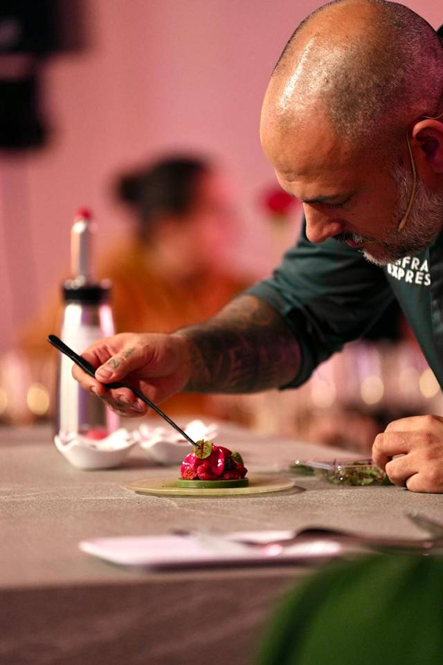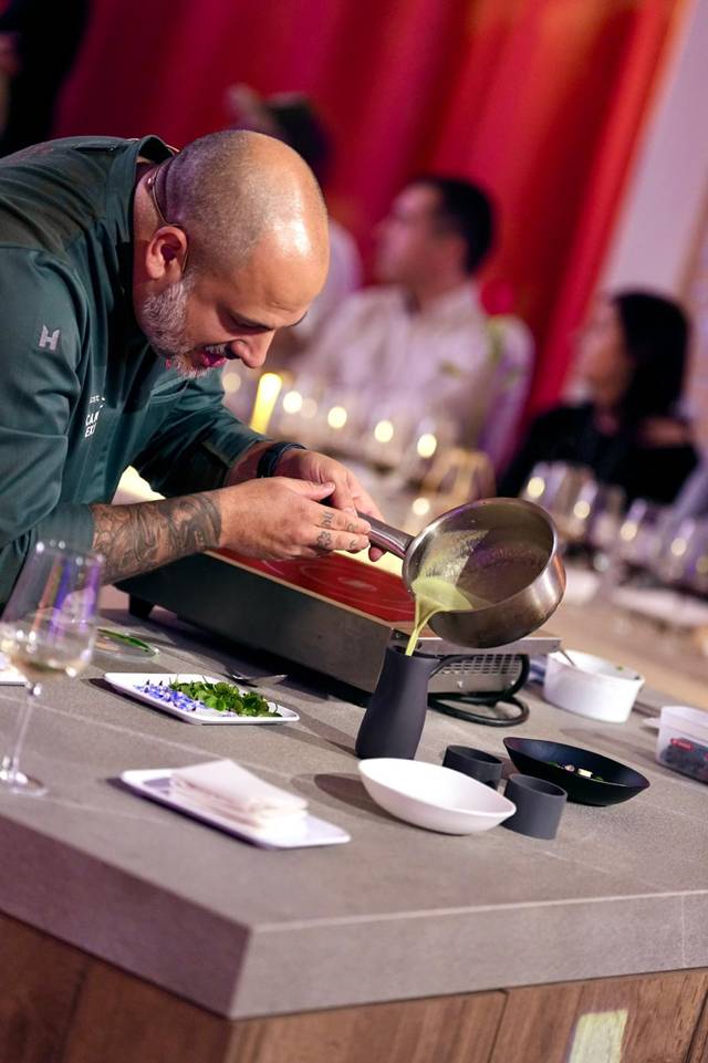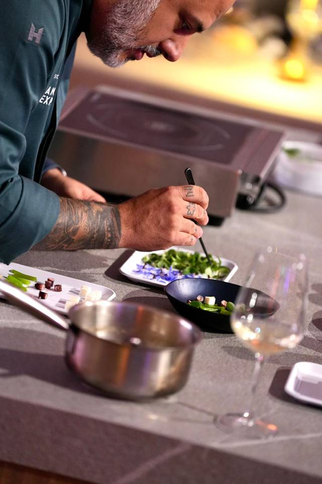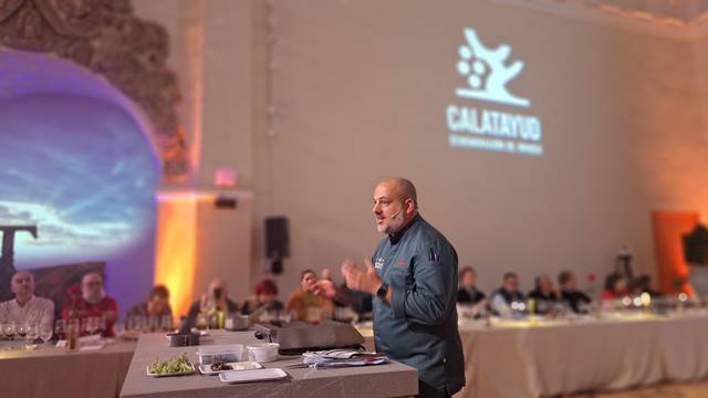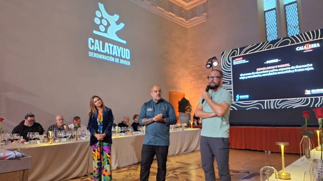 El cierre de la jornada fue a cargo de Eduardo Salanova, Chef y Director Gastronómico de Canfranc Express, quien realizó una propuesta gastronómica mediante showcooking en directo adaptando los platos a los vinos. Complejidad, armonía, texturas y sabores acompañan las propuestas en vinos. Puro Calatayud tanto en la copa como en la mesa, porque es la gastronomía, además de sus vinos, otra de las muchas bondades que se pueden disfrutar en esta tierra. Su reconocida huerta, sus frutales, la ganadería y sus derivados ofrecen una amplia variedad de productos que acompañan perfectamente a sus vinos. Una tierra que ahorra cuenta con nombre y apellidos gracias a este proyecto de Calaterra, que busca ofrecer lo mejor de sí misma siendo la singularidad de sus suelos el elemento diferenciador de sus vinos.