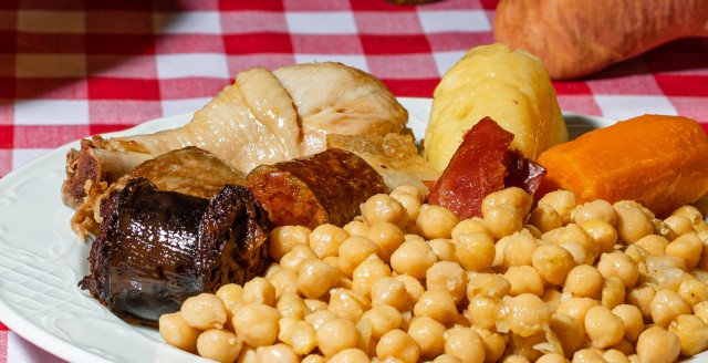 Pocas recetas han sido más reinterpretadas y revisionadas que la del cocido madrileño. Siendo uno de los platos insignia de la gastronomía tradicional española y un fijo en las cocinas de muchísimas familias, no pocos restaurantes han querido desde siempre ofrecer su versión aportando algún detalle característico, o simplemente hacerlo con honestidad. Ambos puntos aplican a la versión que se hace en el Mesón Cuevas del Vino.