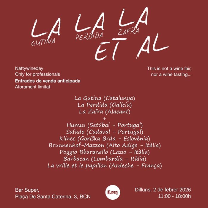 El lunes 2 de febrero se celebrará en Barcelona un encuentro exclusivo para profesionales del sector vinícola, centrado en productores de vino natural y de mínima intervención. La cita tendrá lugar en el Bar Super, situado en la Plaça De Santa Caterina, 3, un local gestionado por los hermanos Colombo, conocidos por su vinculación con el Bar Brutal. El horario del evento será de 11:00 a 18:00 horas y el acceso estará restringido a quienes adquieran la entrada de forma anticipada, con un coste de 15 euros destinado a cubrir los gastos del encuentro.