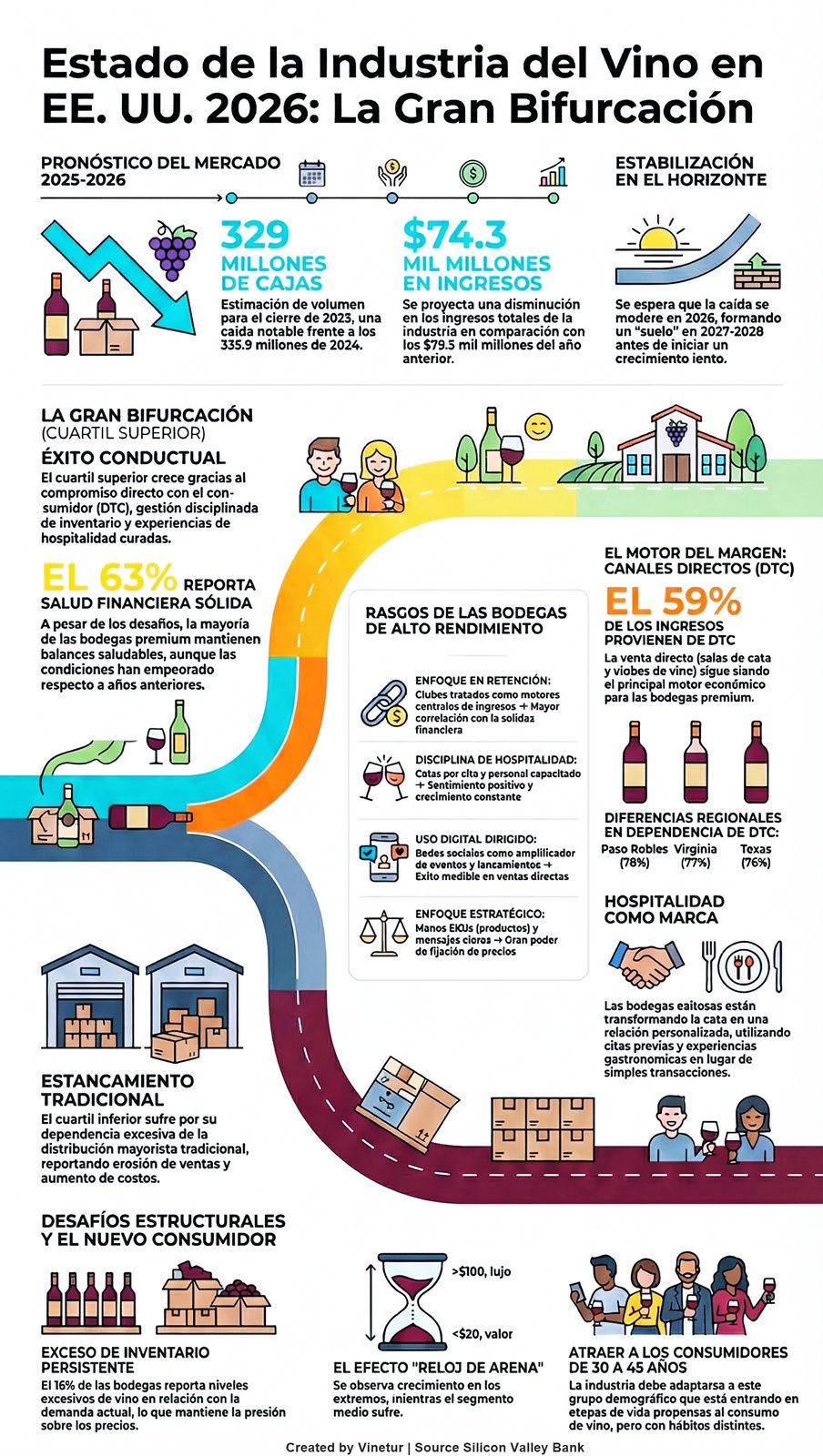 Silicon Valley Bank, una división de First Citizens Bank, ha publicado este jueves, 15 de enero, su 25º informe anual sobre el estado de la industria del vino en Estados Unidos. El documento, considerado una referencia para el análisis del sector de vinos premium, ofrece datos sobre ventas, tendencias de consumo y estrategias empresariales para el año en curso y los próximos ejercicios.