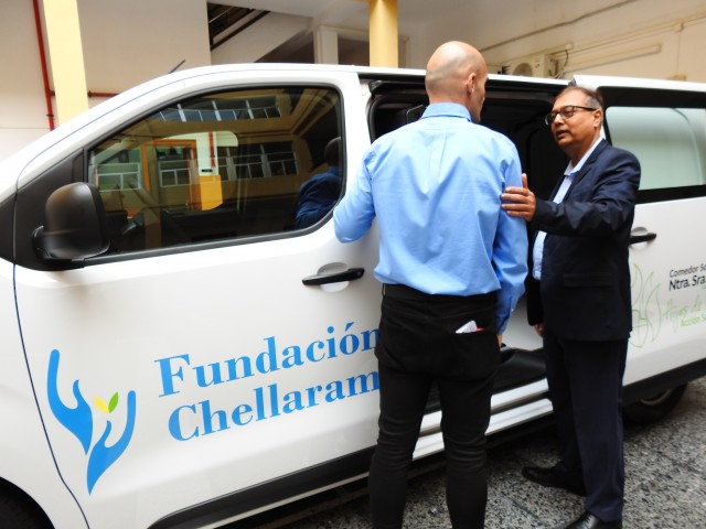 En representación de Chellsons, S.A. y de la Fundación Chellaram, acudió hasta la sede del Comedor Social Ntra Sra del Carmen su Gerente/Apoderado, el señor K. Pankaj, el cual mostró su satisfacción por el resultado de esta colaboración que mejorará sustancialmente la atención prestada a las personas más desfavorecidas de nuestra sociedad. El señor K. Pankaj fue recibido por Sor Martina Herrera, David Santana y Sor Antonia María, Representante Legal, Director e Hija de la Caridad respectivamente de esta Obra Social, acompañados por un grupo de personas voluntarias del Comedor Social.