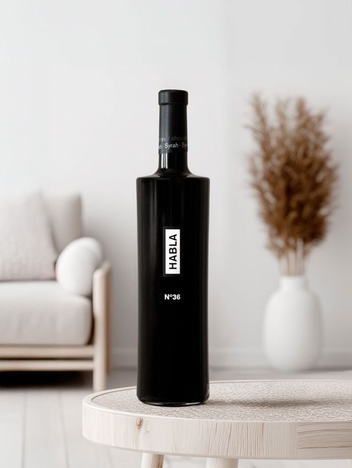 El diseño de la botella de Habla Nº36 es otro de los elementos que la diferencian. Inspirada en el disco "Presence" de Led Zeppelin, la botella cilíndrica fue concebida para tener una presencia destacada en la mesa de cualquier restaurante. Aunque en sus inicios recibió críticas dentro del sector, hoy es reconocida como la botella más representativa de la bodega y se ha convertido en un objeto de colección.