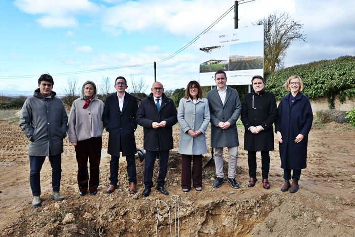 El acto de colocación de la primera piedra del EDA Drinks & Wine Campus se celebró este viernes, 23 de enero, en la parcela de Laguardia donde se levantará el edificio principal del proyecto. La ceremonia contó con la presencia de la consejera de Alimentación, Desarrollo Rural, Agricultura y Pesca del Gobierno Vasco, Amaia Barredo; el diputado general de Álava, Ramiro González; y el director general de Basque Culinary Center, Joxe Mari Aizega. También asistieron representantes de bodegas de Rioja Alavesa, alcaldes y alcaldesas de la comarca y miembros de asociaciones y entidades del sector vitivinícola.