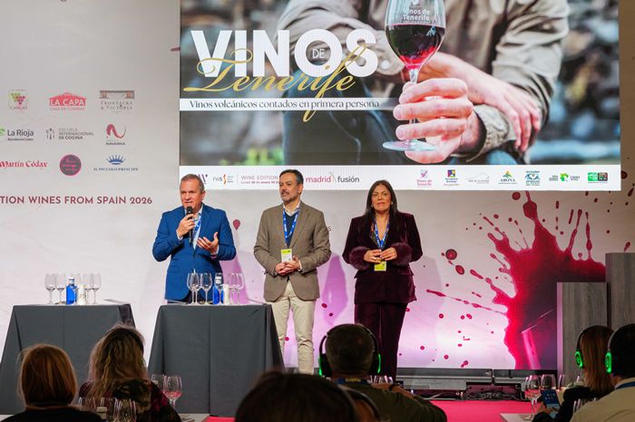 La jornada ha comenzado con la Gran Cata de Vinos de Tenerife, bajo el título 'Vinos volcánicos contados en primera persona', que ha llenado la sala con sumilleres españoles e internacionales. La cata ha incluido vinos de las seis denominaciones de origen de la isla, como La Choza del Cabrero 2023 (Valle de Güímar), Origen Suelo de Jable 2024 (Abona), La Haya Barrica 2022 (Valle de La Orotava), El Lomo Tinto Vendimia Seleccionada 2024 (Islas Canarias), Estrada Marmajuelo Ecológico 2025 (Ycoden-Daute-Isora) y Cráter Selección Especial XXV Aniversario 2023 (Tacoronte-Acentejo). La demanda ha sido tal que la cata completó su aforo días antes y ha contado con lista de espera.