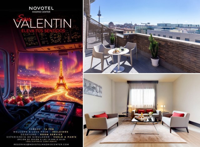Por sólo 145€ por persona (290€ por pareja), el mejor plan para San Valentín, proporcionado por Novotel Madrid Center, será un regalo inolvidable. Una sorpresa para quien siempre soñó con pilotar un avión; un detalle para los que le gusta que le lleven el desayuno a la cama; y una ocasión perfecta para celebrar el amor en una de las ciudades más vibrantes de Europa disfrutando de un hotel que nunca te deja indiferente...
