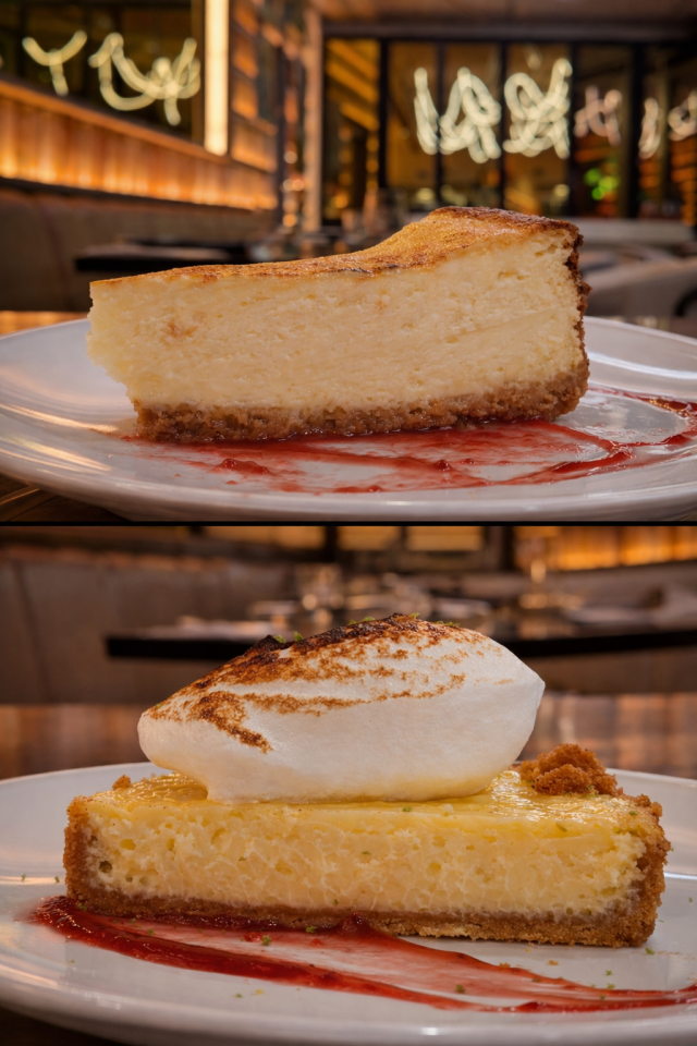 No hay final sin postre. Quienes prefieran moverse en el terreno de lo tradicional encontrarán en la Tarta de queso un refugio fiable. Un postre que, pese a haberse convertido en demasiadas ocasiones en un cajón de sastre donde todo vale, aquí aparece con corrección y criterio: horneada, de interior denso y cremoso, textura homogénea y bien ligada, base de galleta proporcionada y un acompañamiento ligero de coulis de frutos rojos como punto de acidez controlada. Para quienes busquen un cierre más sofisticado, el Lemon pie ofrece una lectura clásica bien ejecutada. Base de galleta compacta y dorada, relleno cremoso y denso de tono amarillo pálido, merengue tostado en la parte superior y de nuevo un coulis rojo que introduce contraste ácido y visual. Dos finales distintos, ambos igual de buenos.