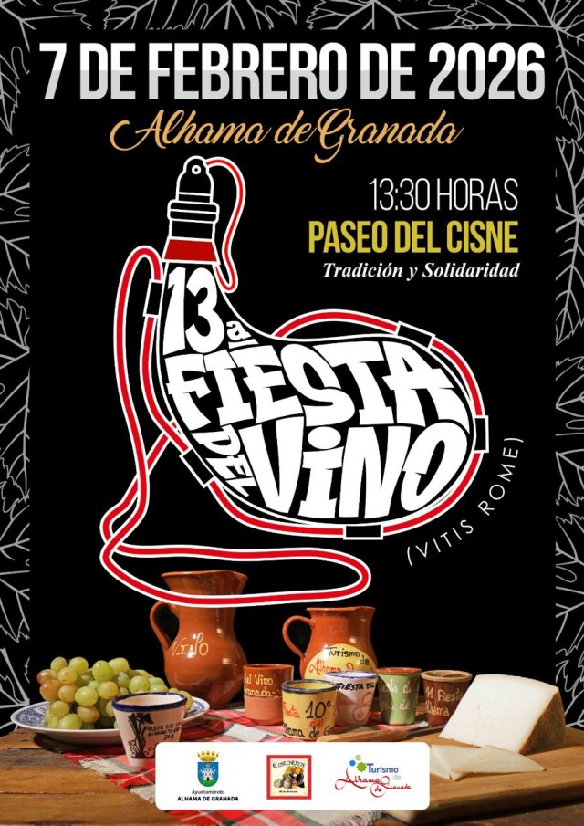 La Fiesta del Vino de Alhama de Granada nace con el firme propósito de dar a conocer este tradicional vino, logrando con cada nueva edición una posición destacada en el calendario de fiestas como una cita ineludible para miles de personas. Más de 2.500 litros de Vino del Terreno de un total de 26 cosecheros que se ofrecerán al numeroso público este año, acompañado de la gastronomía y productos típicos de la zona.