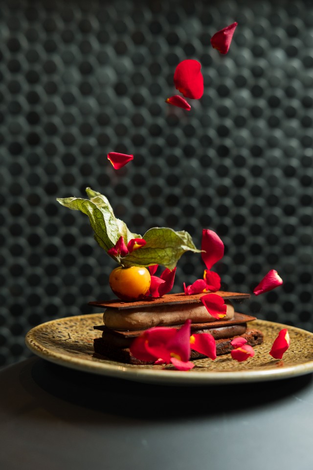 El momento más narrativo llega por la noche en Hielo y Carbón, con una cena concebida para compartirse. La experiencia se articula alrededor del fuego y el producto, con una secuencia clara: aperitivos de apertura, burrata con matices mediterráneos, paletilla de cochinillo cocinada a baja temperatura y un milhojas de chocolate como gesto final. Una propuesta exquisita, bien ensamblada, que busca el equilibrio más que el efecto sorpresa.