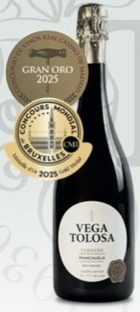 Vega Tolosa Brut Nature Tardana (Espumoso):Método: Elaborado según el método tradicional con una crianza sobre lías de 10 a 18 meses.Reconocimientos: Recientemente galardonado con la Medalla de Oro en el Concours Mondial de Bruxelles 2025 y el Gran Oro en el Real Casino de Madrid.