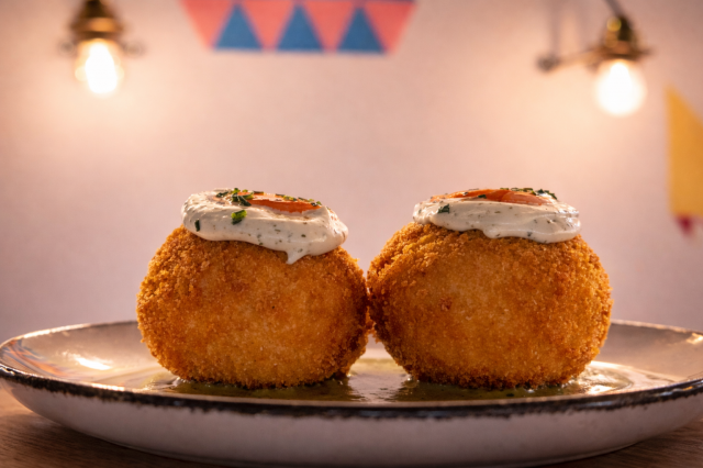 Clásico del sur de Estados Unidos, los Tomates verdes fritos llegan con rebozado firme y crujiente, de mayor presencia, sin exceso graso. En el interior, el tomate mantiene sabor claro y acidez marcada. El queso de cabra suma cremosidad, la confitura de higos introduce dulzor y la rúcula deja un leve amargor final. Guiño evidente a Fried Green Tomatoes, reinterpretado con acento propio.