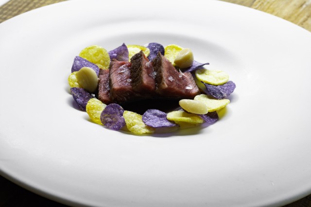 La propuesta gastronómica de Samuel Moreno parte de una premisa clara: interpretar el territorio. Su cocina se construye desde la temporalidad del producto y desde una red de productores que define tanto el fondo como la forma de los platos. En ese marco, el trabajo con harinas ecológicas y trigos antiguos refleja con precisión esta línea. En colaboración con la harinera DeSpelta, el restaurante recupera variedades locales que se integran tanto en la panadería diaria como en platos donde el cereal adquiere protagonismo.