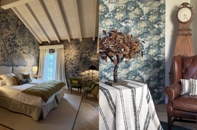 La restauración ha respetado el alma del edificio original, incorporando al mismo tiempo una estética refinada y cálida. Maderas nobles, tejidos naturales, piezas escogidas con criterio, porcelanas delicadas, luz suave. Nada sobra, nada pretende impresionar. Todo invita a quedarse.