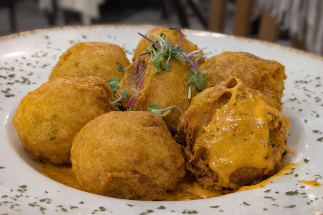 Las patatas bravas abañueladas enseñan el lado más ingenioso de la casa. La masa de patata, trabajada a mano para formar cada pieza, queda envuelta en un rebozado finísimo que aporta ligereza. En boca resultan melosas, se deshacen con facilidad y no cansan. La salsa brava, con un picante claro, aporta el contrapunto y mantiene el bocado vivo. Un plato con peso, pero sorprendentemente ágil, que cambia la forma de entender unas bravas.