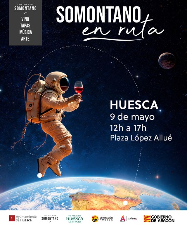 Somontano en Ruta abrirá así el calendario de un ciclo que recorre distintas plazas del Alto Aragón y que combina vino, música, arte y gastronomía local. La parada de Huesca será el punto de partida de una programación que continuará en Binéfar el 23 de mayo, Benasque el 30 de mayo, Jaca el 6 de junio, Aínsa el 20 de junio y Barbastro el 7 de noviembre.