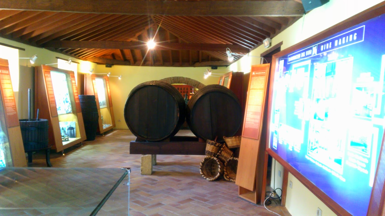 Centrándonos en la sala dedicada al vino, podemos comprobar la importancia que tuvo el vino Canario en la historia en especial el vino Malvasía, los tipos de uva autóctonos de las Islas, el tipo de terreno...Muy ameno e interesante.