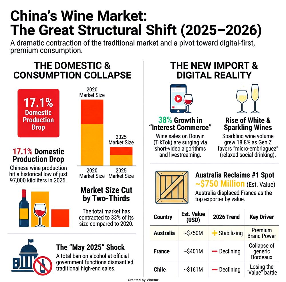 Overall, China’s wine market at the start of 2026 is smaller but more sophisticated than before—shaped by economic caution, regulatory change, evolving consumer tastes, digital innovation, and fierce competition among global suppliers seeking relevance in an altered landscape.