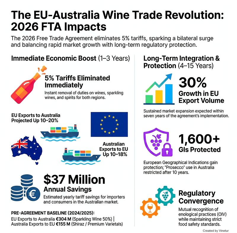 Overall trade between Europe and Australia is set for substantial growth under this new framework. In 2024/2025 alone, EU wine exports to Australia reached €304 million while Australian exports to Europe totaled €155 million—figures likely to rise as tariff barriers fall away.