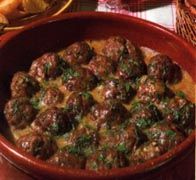 Hacer una masa y dejarla reposar como una hora. Al cabo de ese tiempo, y cuando esté la masa compacta, hacer las albóndigas, pasarlas por harina y freirlas un poco. No demasiado para que estén jugosas. Apartarlas a una cazuela.