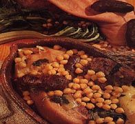 Una vez servida la sopa, se presentan en una fuente los garbanzos bien escurridos juntamente con el repollo y las patatas. Y consumido este plato, se escurren bien las carnes con un colador grande, y se presentan en otra fuente con los tocinos, los chorizos y las morcillas.