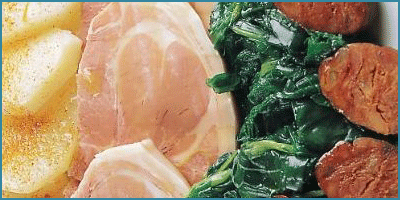 No es bueno que el lacón espere. Para servir poner en una bandeja el lacón bien caliente con los chorizos y en la otra los grelos y las patatas.