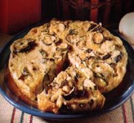 Poner a deretir en una sartén la mantequilla junto con el aceite. Picar la cebolla y dorarla. Cuando esté dorada, incorporar los calabacines lavados y cortados en rodajas. Sazonar con sal y pimienta y añadir los tomates escaldados, pelados y cortados en trocitos. Incorporar un poco de romero fresco.
