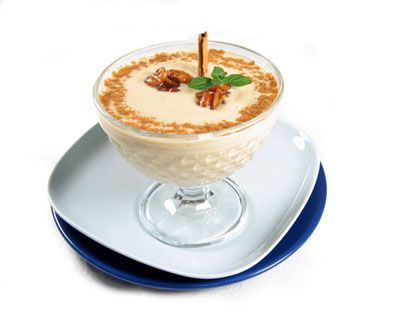 Servimos caliente o tibio en unas copas individuales y con canela espolvoreada, y unas ramitas de la canela en rama a modo de decoración.