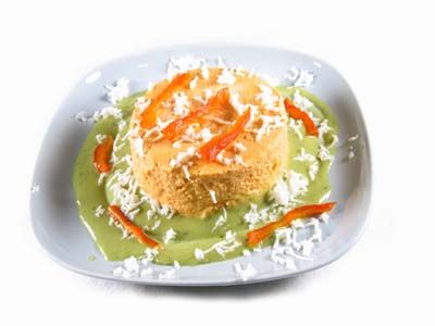 Desmoldamos y servimos templado acompañado de la crema de acelgas.