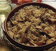 En un mortero majar el azafrán con dos cucharaditas de agua y añadirlo a la cazuela. Dejar cocer a fuego lento durante 5 minutos y añadir el arroz. Salar al gusto.