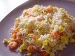 La preparación empieza con la cocción del arroz. Para ello colocar en una olla un poco de aceite de oliva o aceite vegetal verter el arroz y dejarlo freír por unos 3 a 4 minutos revolviendo con regularidad, agregar 4 tazas de agua (la regla es de 2 tazas de agua por 1 de arroz). Dejar que se consuma toda el agua SIN tapar y a fuego lento. Mientras cuece el arroz, vamos a preparar los otros ingredientes. En un sartén poner un poco de aceite y colocar lo huevo, cocerlos como de modo a obtener huevo revueltos bien cocidos. En este mismo sartén y una ves que el huevo está bien cocido agregar el ajo finamente picado con los camarones pacotillas ya cocidos, la mantequilla, sal y pimienta al gusto. Dejar freír todo esto por unos minutos más. Si es necesario puede agregar un poco de aceite para que no pegue al sartén si esté demasiado seco. Esta preparación se mezcla entonces al arroz que entretanto ya debería de estar listo