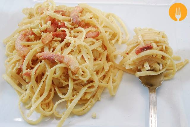 Vamos a elaborar una carbonara que reproduzca lo más fielmente la receta original, por lo que hemos optado por no usar nata. Se obtiene así un plato delicioso y muy fácil de preparar.