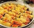 Uno a uno, se les pone una cucharada de relleno, y se enrrollan, colocándolos uno al lado de otro en la tartera untada de mantequilla.