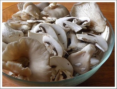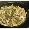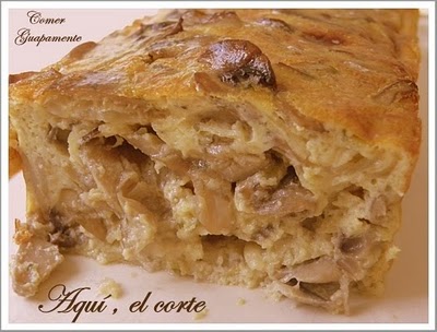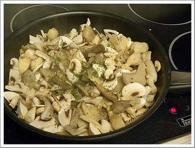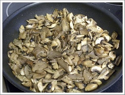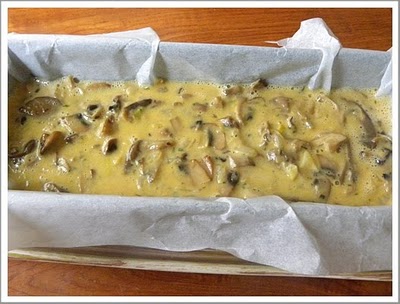 Antes de empezar, forramos con papel de horno un molde de bizcocho rectangular. También vamos a necesitar el horno precalentado a 180ºEn una sartén ponemos un poco de aceite de oliva y salteamos los champiñones, que estarán limpios , picados y con un poquito de sal y a continuación les añadimos el perejil picado:Y dejamos que se hagan unos 10/15 minutos:En una cazuela, aparte, ponemos un poco de aceite de oliva y sofreímos las verduras picadas junto con los ajos (también picados muy finos). Pasados unos 10 minutos añadimos el caldo (en mi caso, agua con un poco de caldo concentrado) y los champiñones y dejamos que se haga todo junto otros 10 minutos aprox.). Añadimos la nata y mezclamos con una cuchara de madera. Retiramos del fuego , agregamos los huevos batidos y vertemos en el molde:
