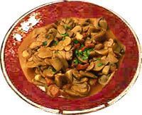 En una sartén con aceite, poner a freír los ajos cortados a láminas y cuando empiecen a tomar ligeramente color dorado, añadir los champiñones.