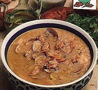 En total debe de cocer veinte minutos contados desde el momento de la incorporación del arroz. La sopa ha de resultar ligeramente espesa, pero no demasiado.