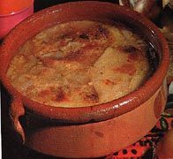 De nuevo la cazuela en el fuego, incorporar el caldo y el pimentón. Espolvorear con la pimienta y colocar encima las rebanadas de pan espolvoreadas con el queso parmesano.