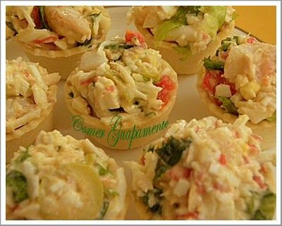 Para hacerlas sólo tenemos que coger cucharaditas de la ensaladilla que nos guste, rellenamos, las colocamos en un plato "guapín" y ... a "comer guapamente".