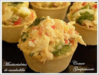 Para hacerlas sólo tenemos que coger cucharaditas de la ensaladilla que nos guste, rellenamos, las colocamos en un plato "guapín" y ... a "comer guapamente".
